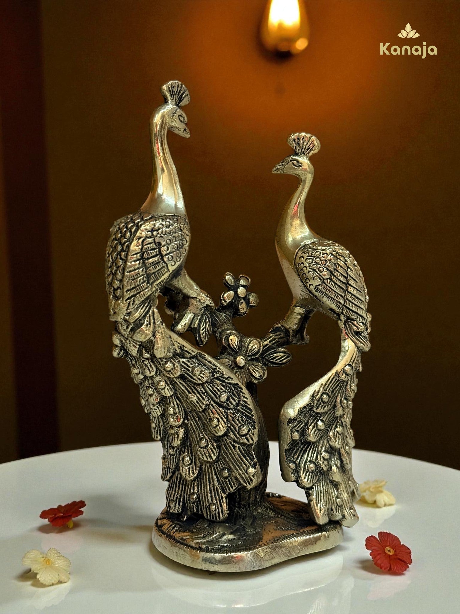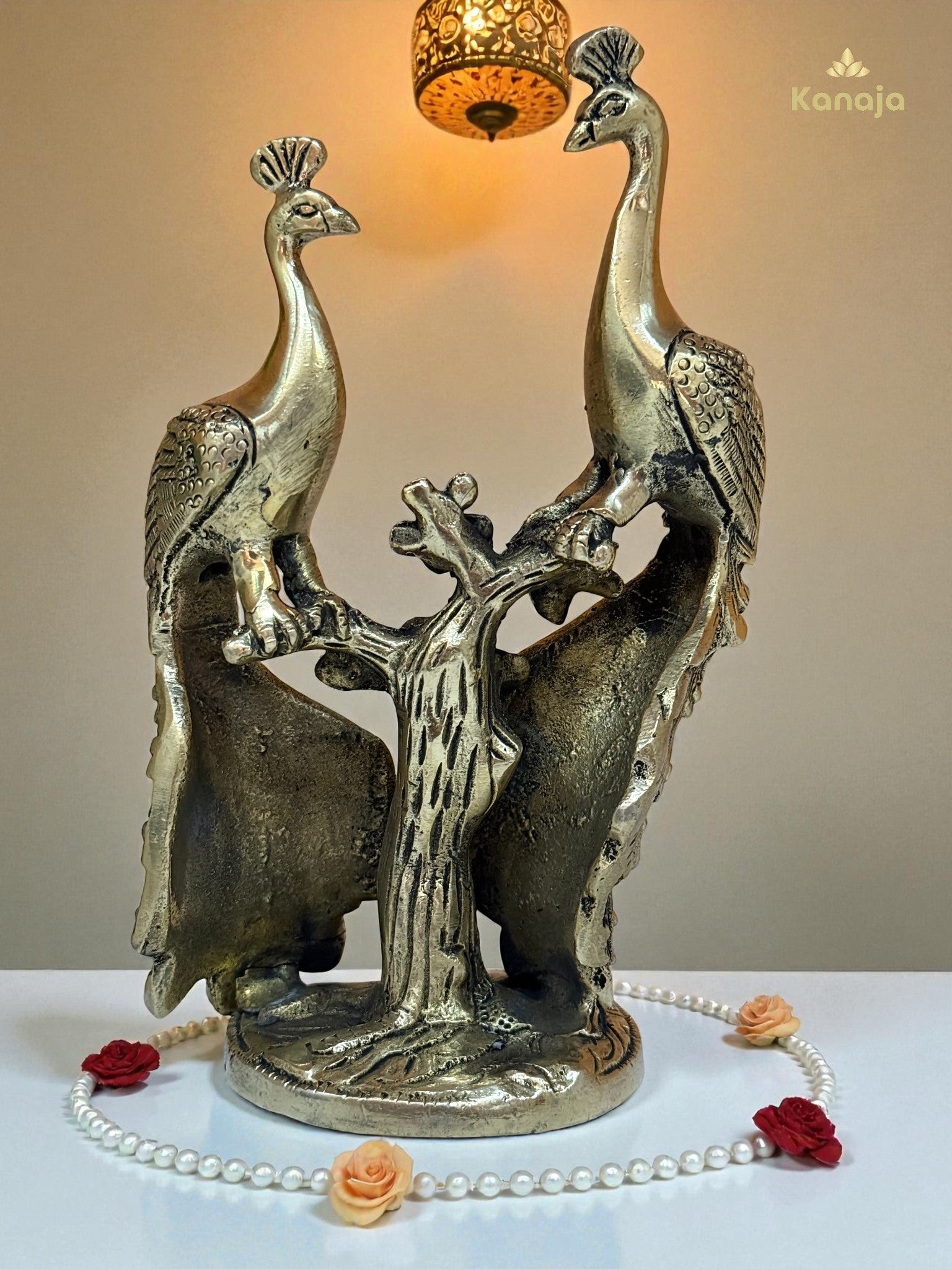 Add a touch of elegance and harmony to your space with this Brass Peacock Pair Showpiece. Handcrafted from high-quality brass, this exquisite sculpture features two peacocks perched gracefully on a blossoming branch—symbolizing love, beauty, and immortality.