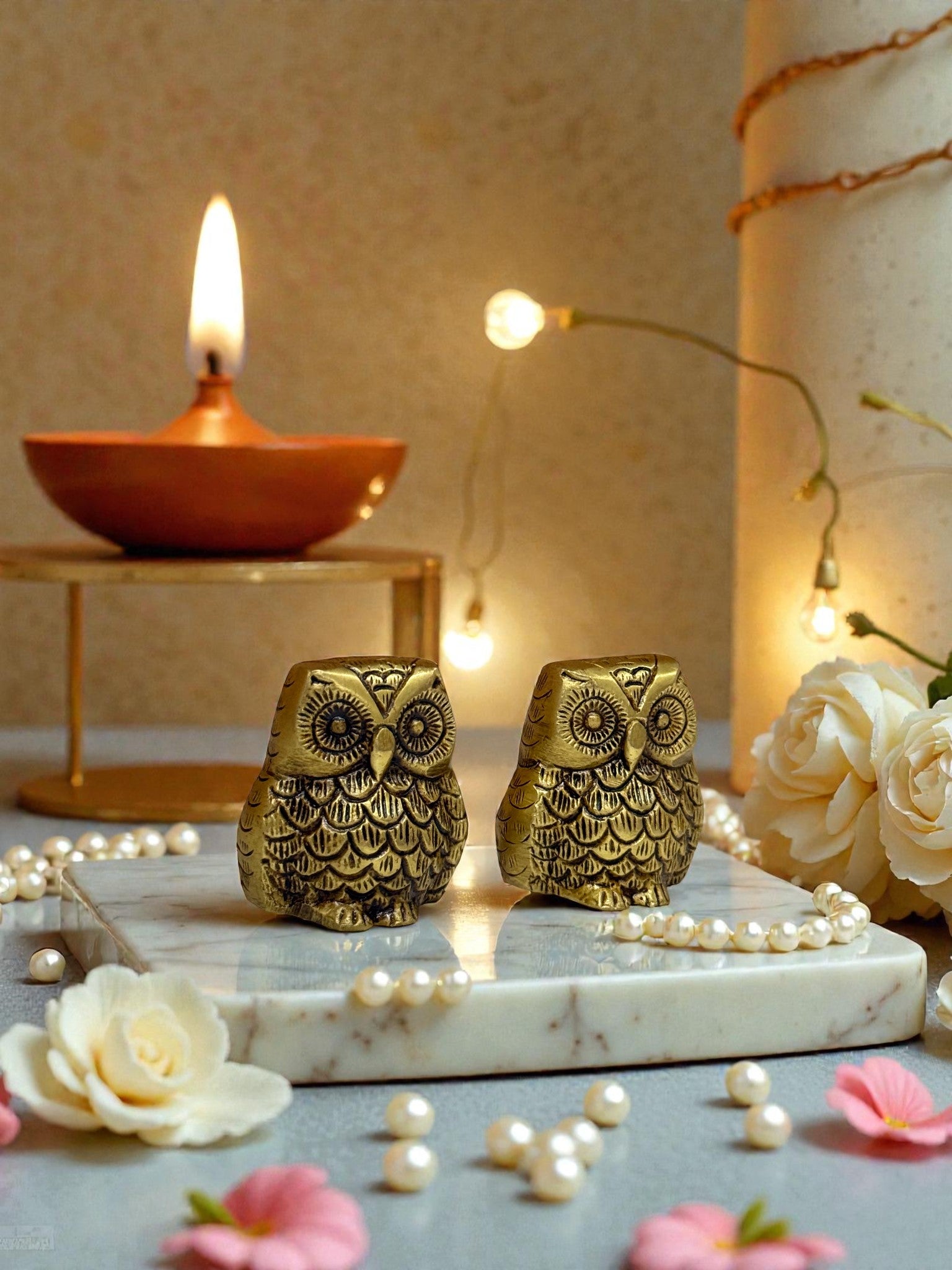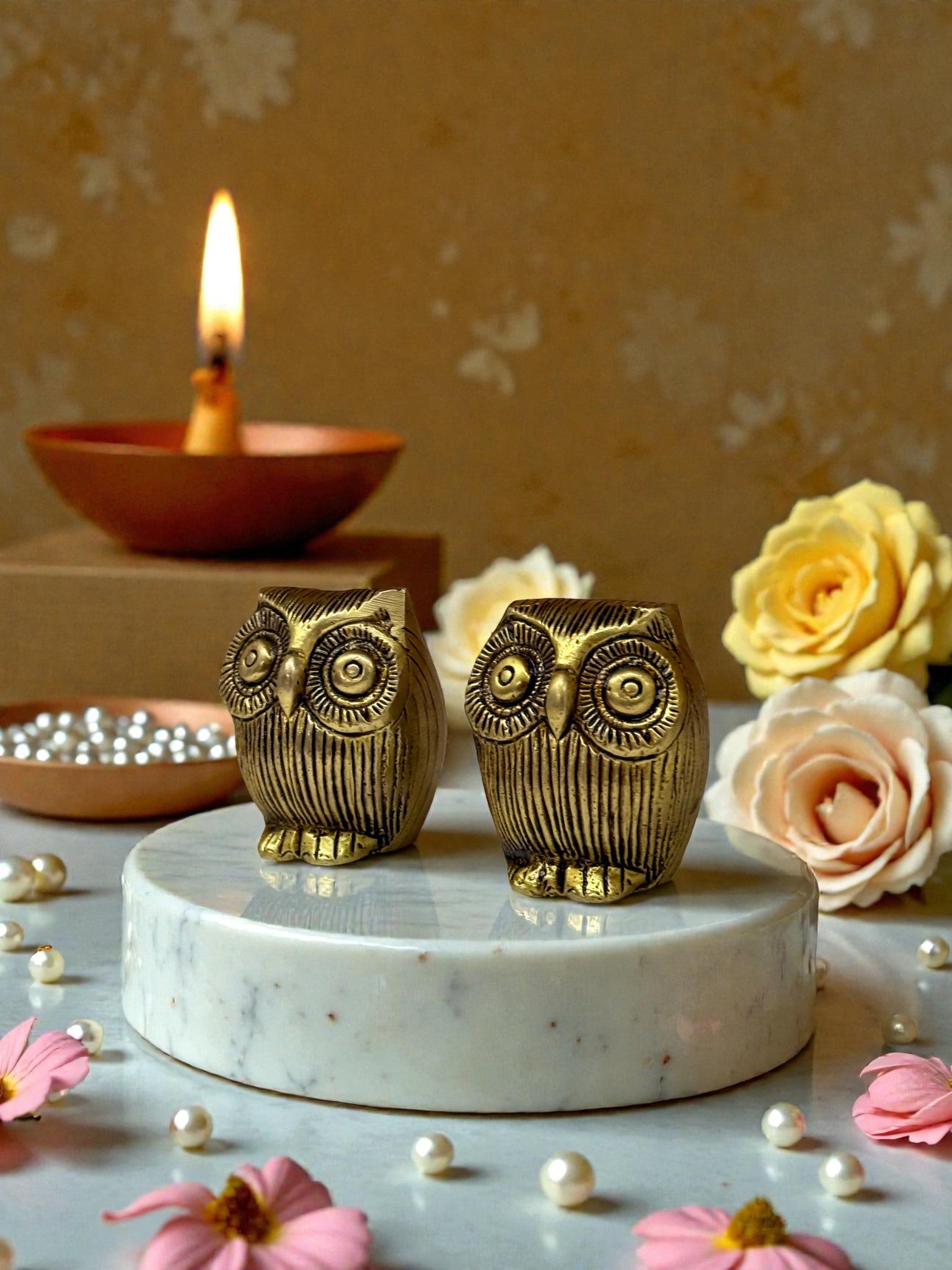 Finished in a warm antique golden brass tone, these owls make a stunning accent for any home or office setting. Whether placed on a bookshelf, desk, or entryway console, their gleaming patina complements both modern and traditional interiors.