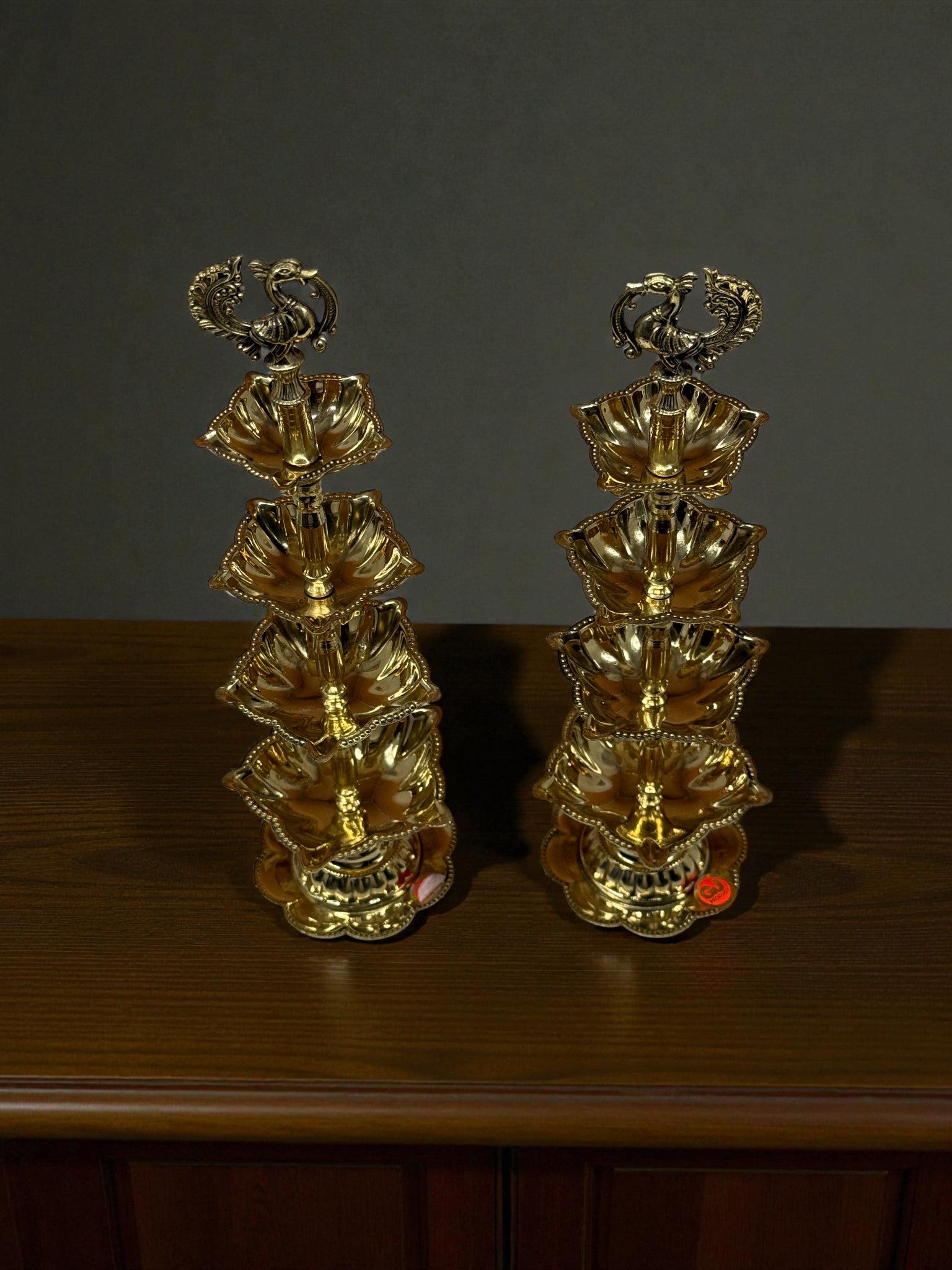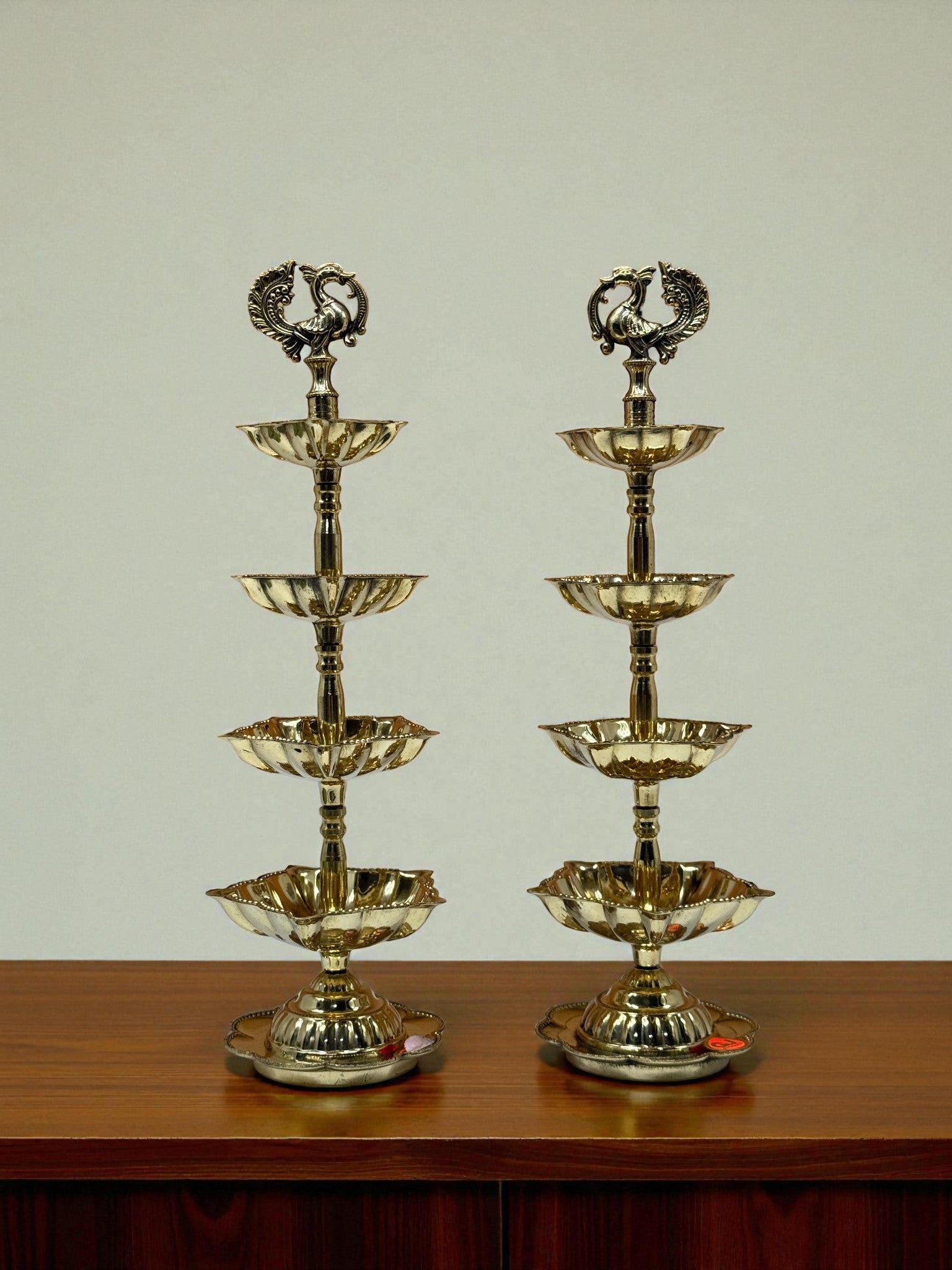 Exquisite Brass Peacock Tiered Deepam / Diya Stand – Set of 2