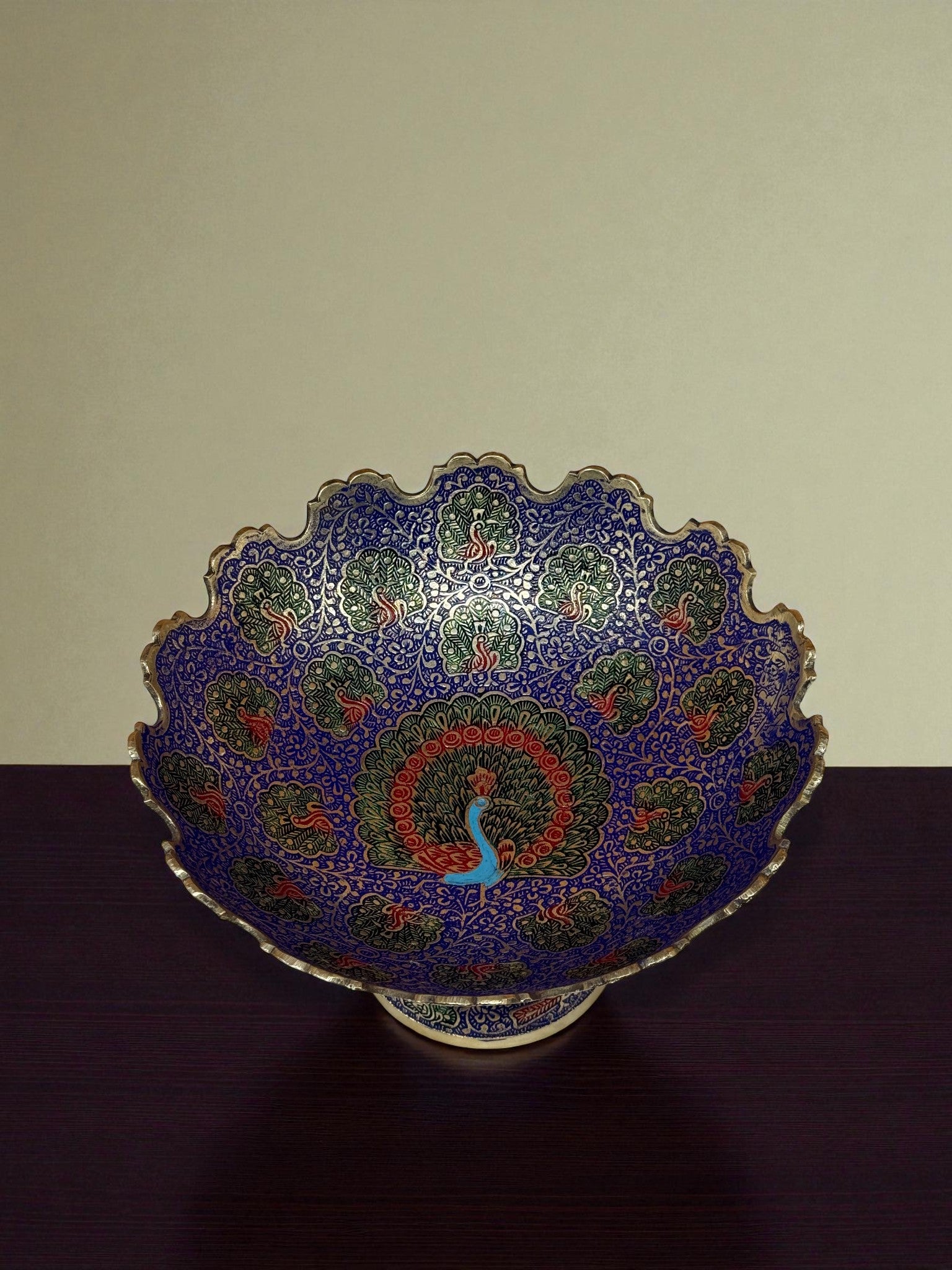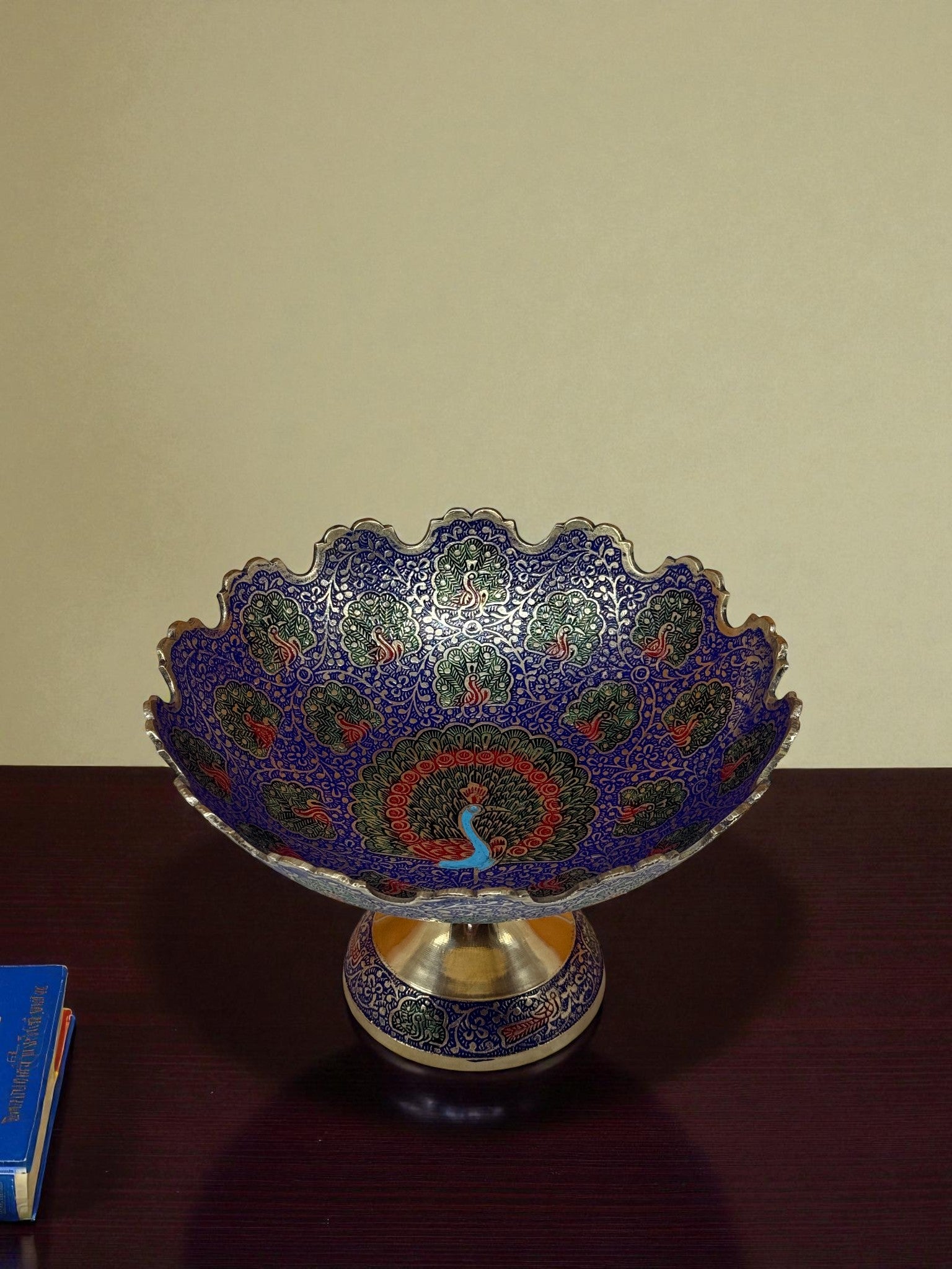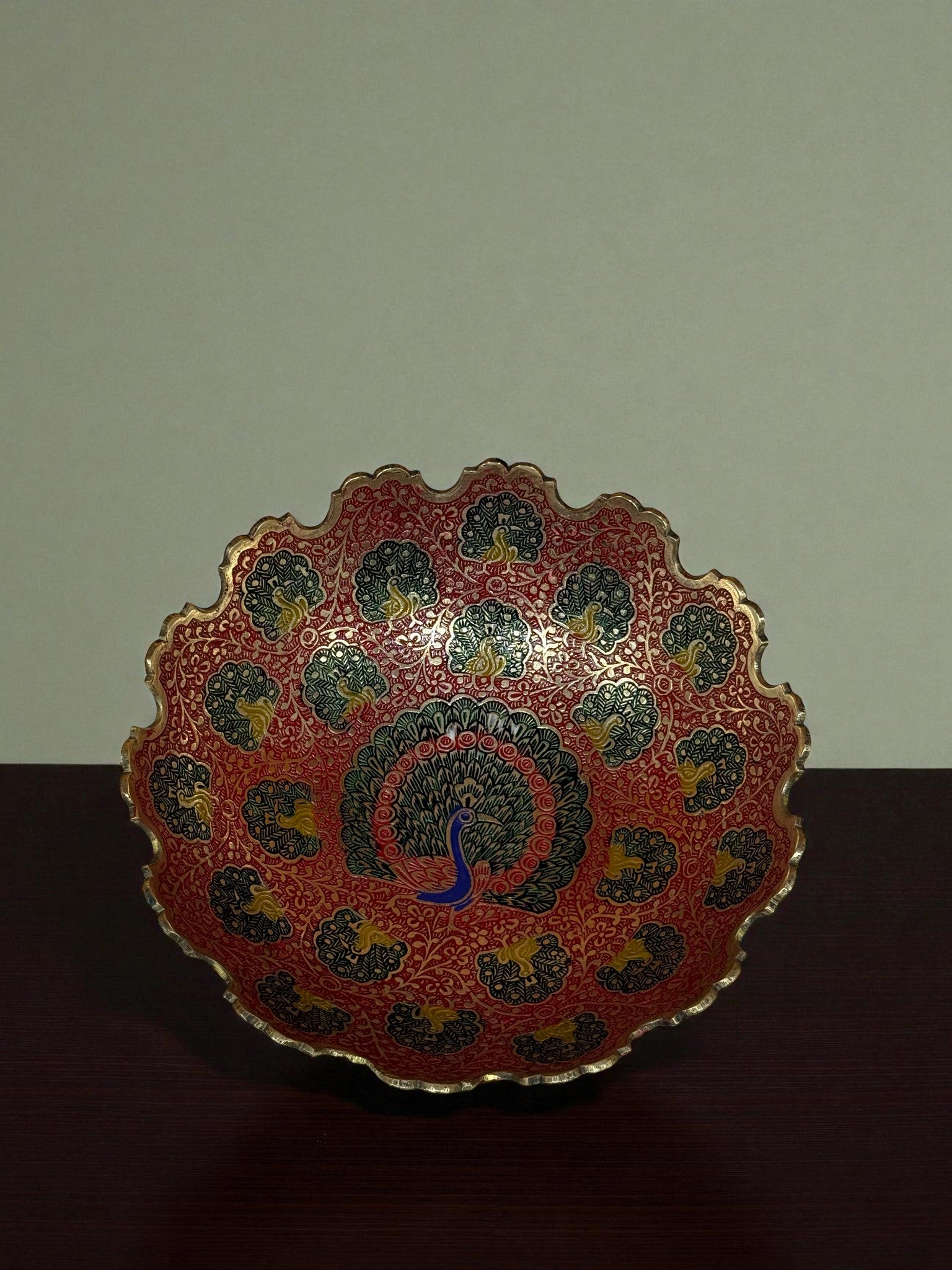 Exquisite Hand-Painted Enamel Brass Decorative Bowl – Peacock Motif