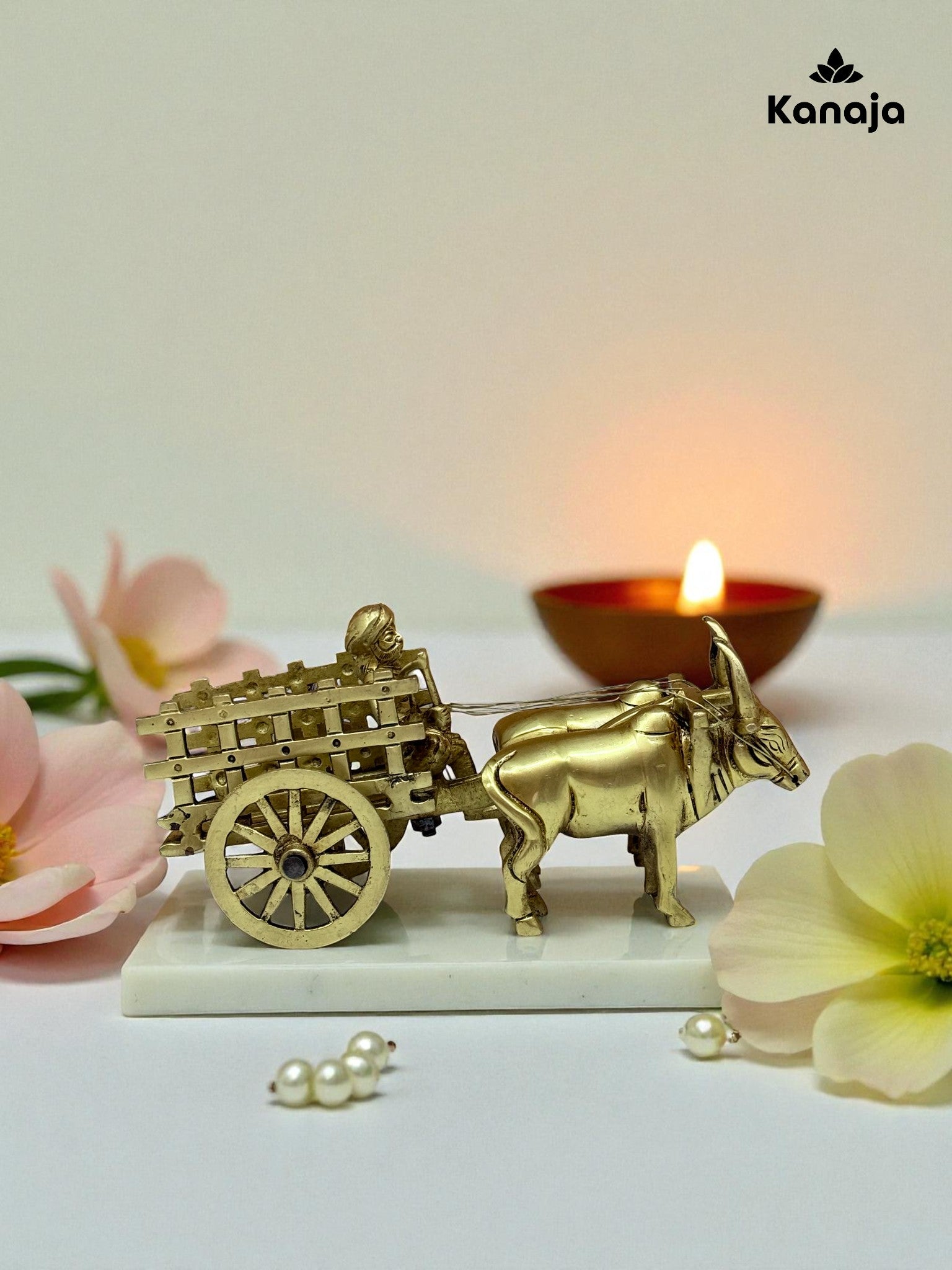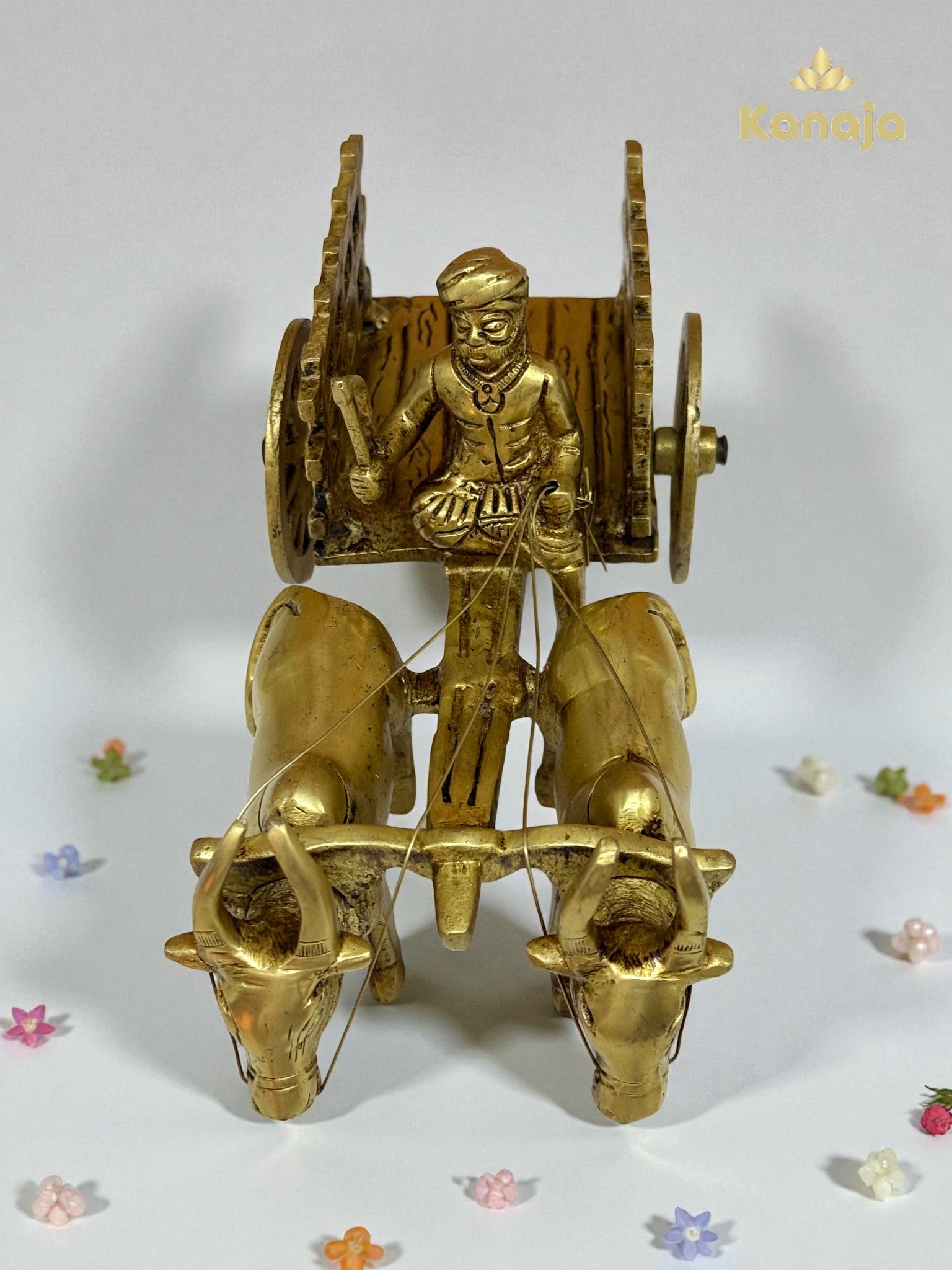 Celebrate India’s timeless rural beauty with this Golden Bullock Cart with Rider Statue, a handcrafted masterpiece that captures the simplicity and charm of traditional village life. The piece features a bullock gracefully pulling a detailed cart with a seated rider — a symbol of heritage, hard work, and harmony with nature.