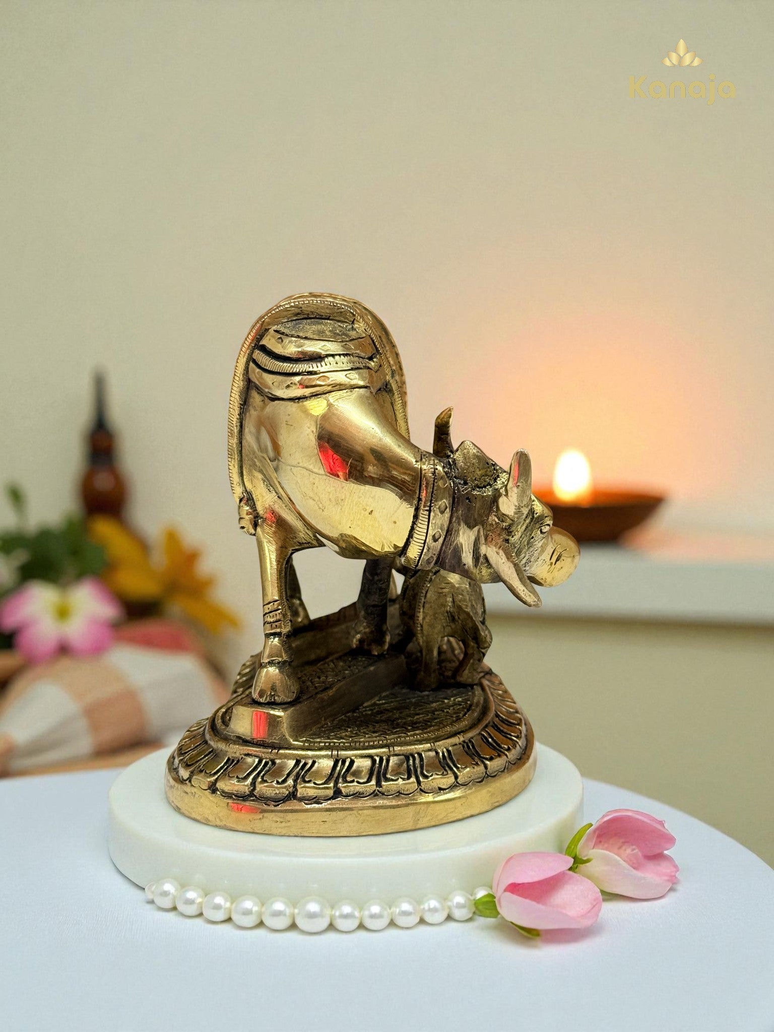 Handcrafted Brass Kamadhenu Cow & Calf Idol
