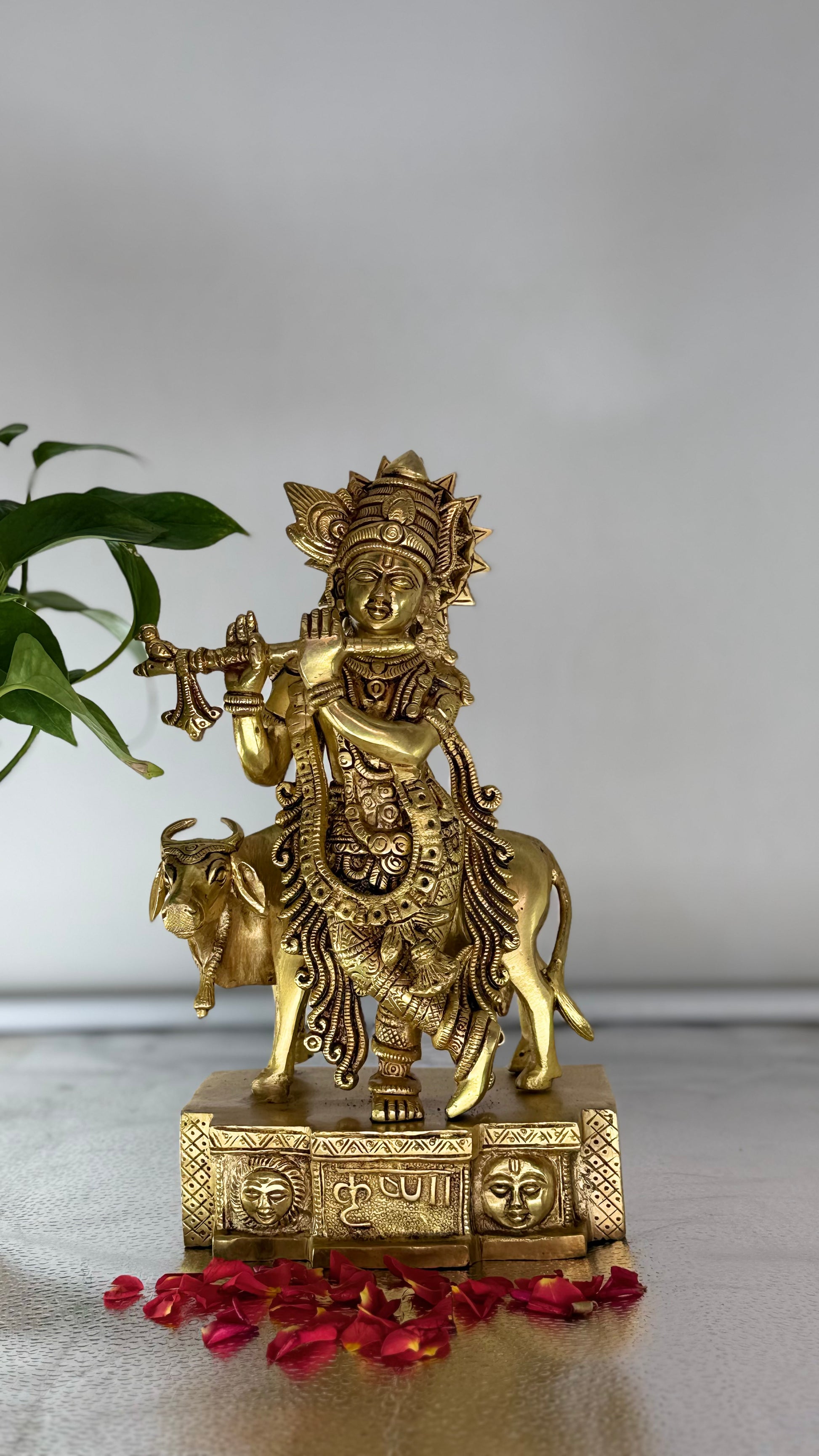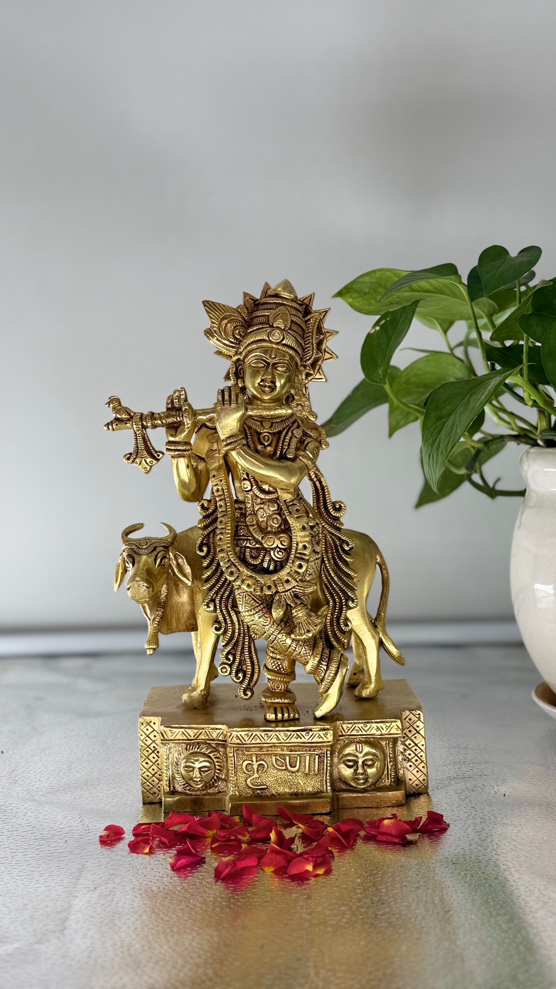 Included: 1 × Lord Krishna with Kamdhenu Brass Idol