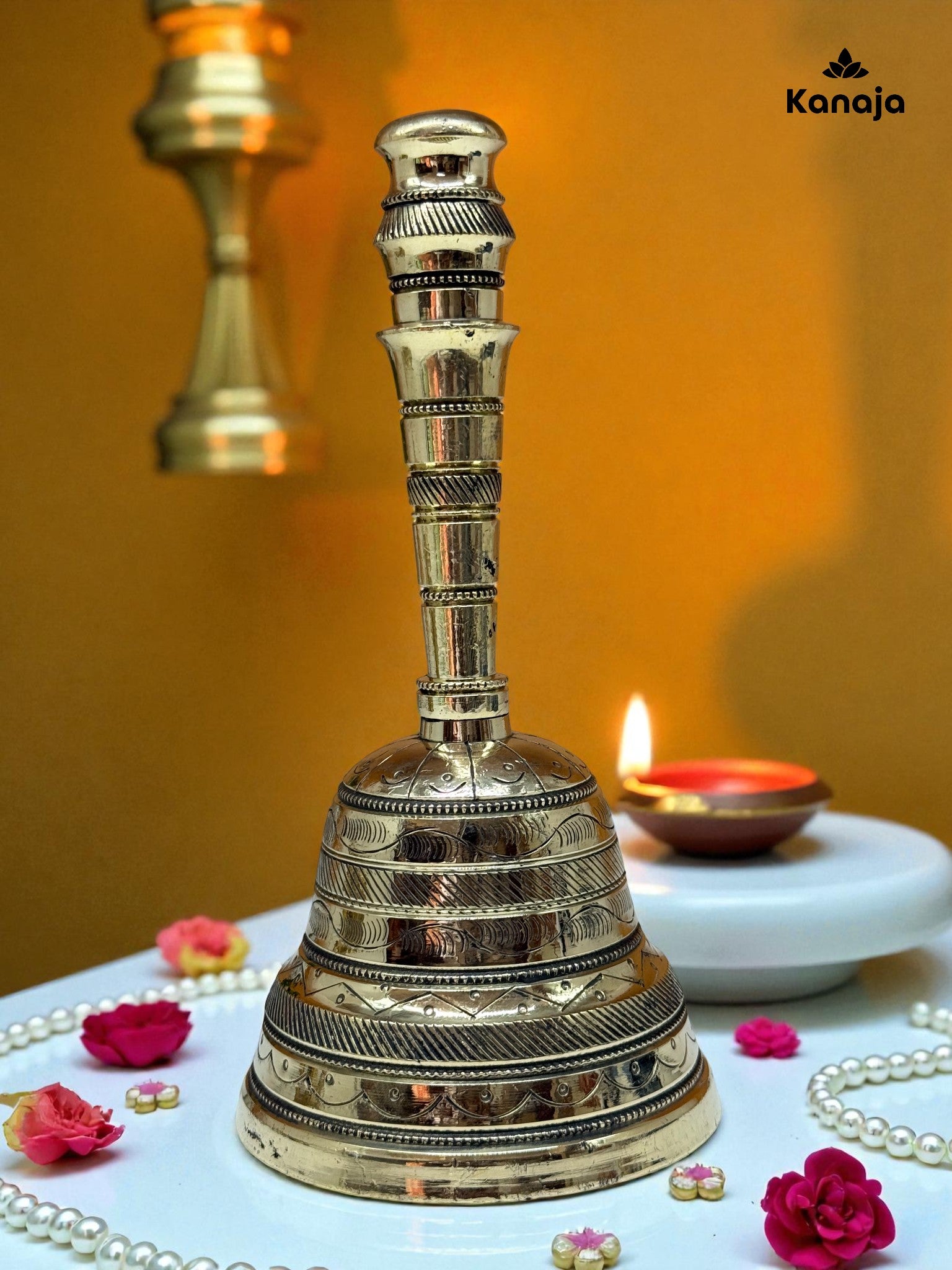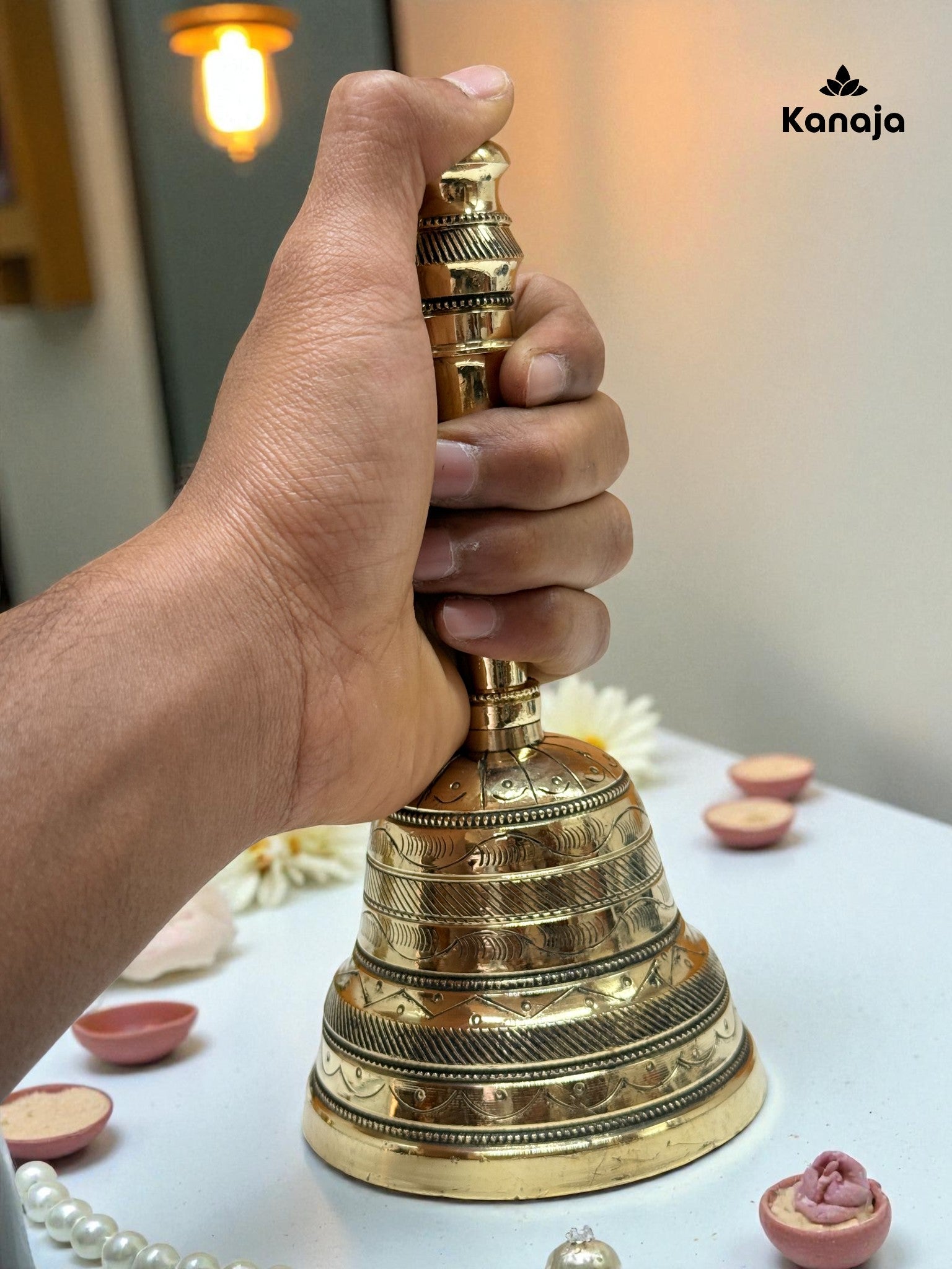 Handcrafted Golden Brass Puja Bell - Sacred Sound & Elegant Decor