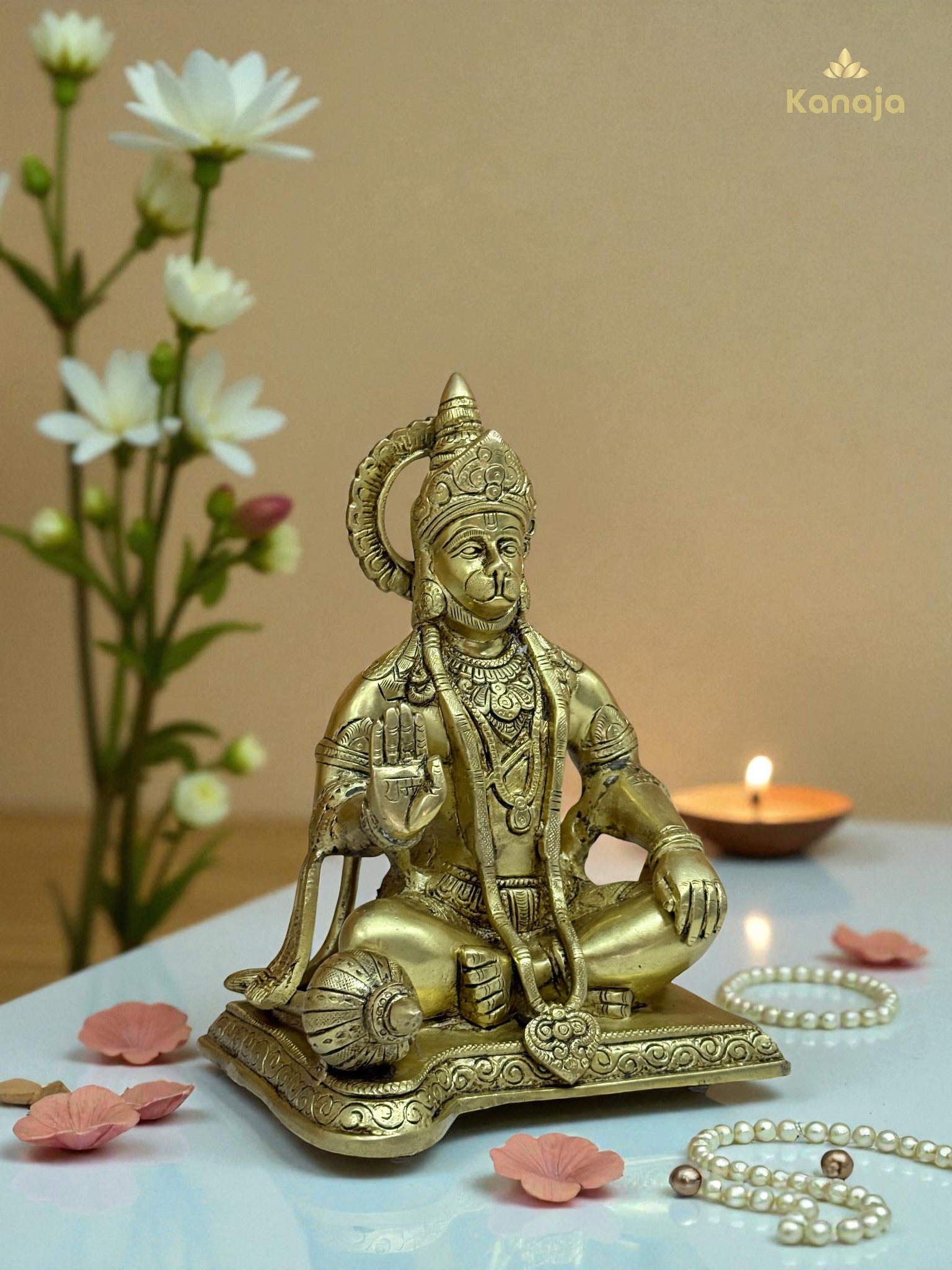 Handcrafted Meditating Hanuman Murti in Brass - For Devotion, Strength & Protection