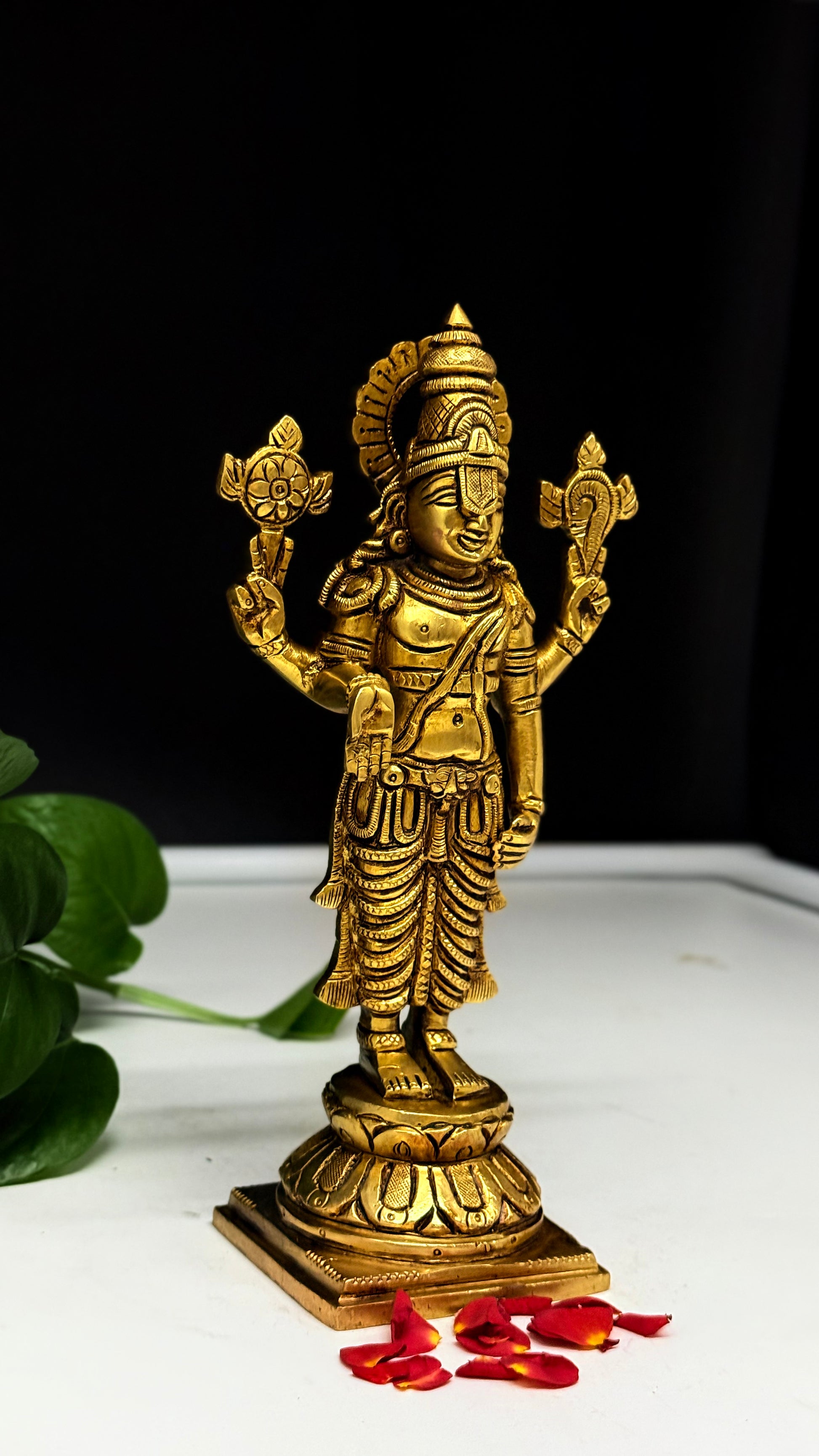 Expert artisans have meticulously sculpted every detail from the elaborate crown and flowing robes to the serene expression of the deity. The idol features Lord Venkateswara in his iconic four-armed posture: