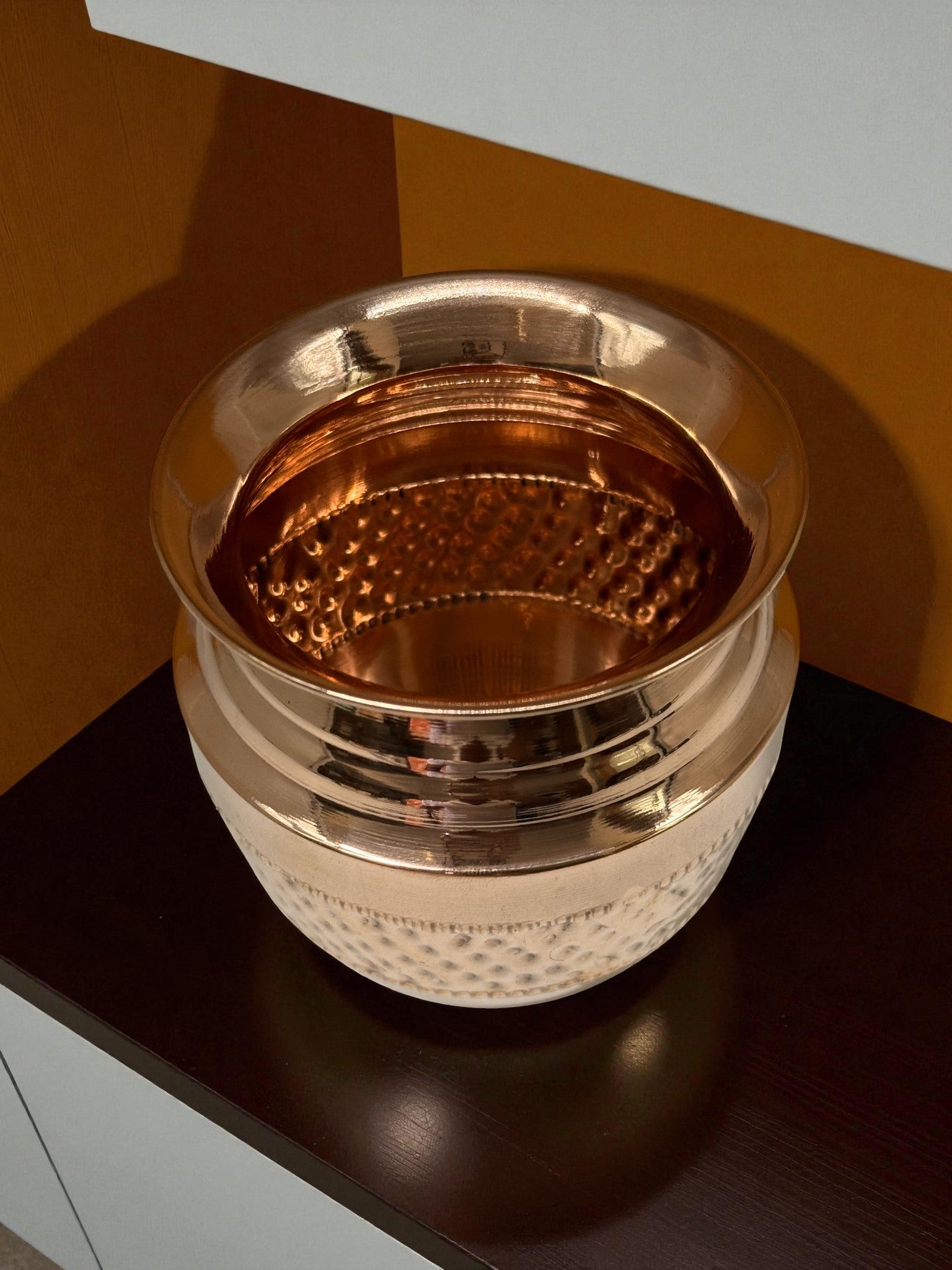 Add rustic charm and timeless elegance to your home with this Handcrafted Hammered Copper Pot, expertly shaped and textured by skilled artisans. Each piece is individually hand-hammered, giving it a unique pattern and a warm, reflective glow that only pure copper can offer.