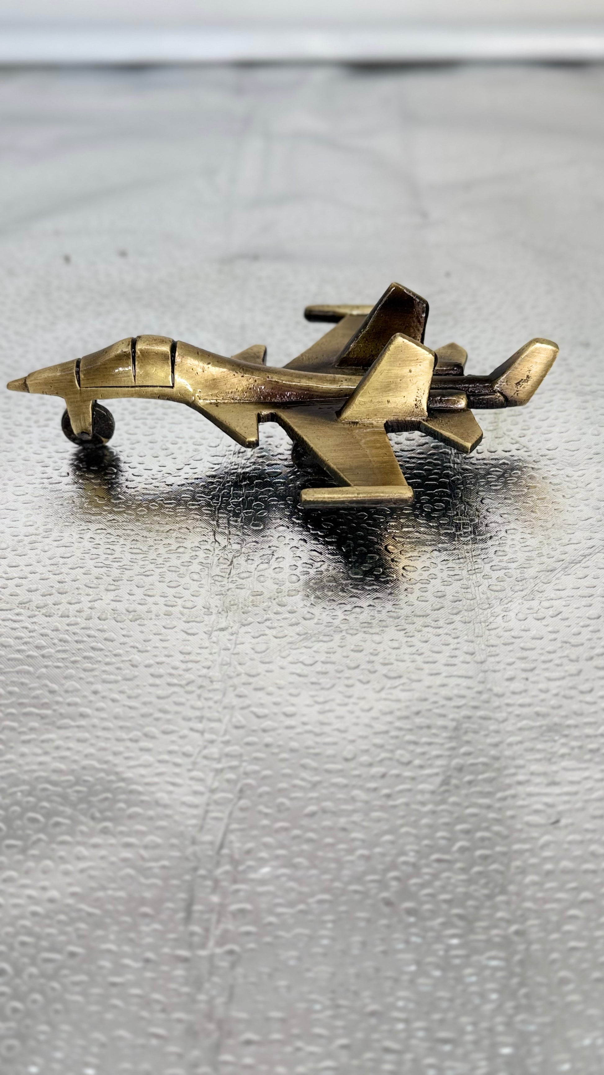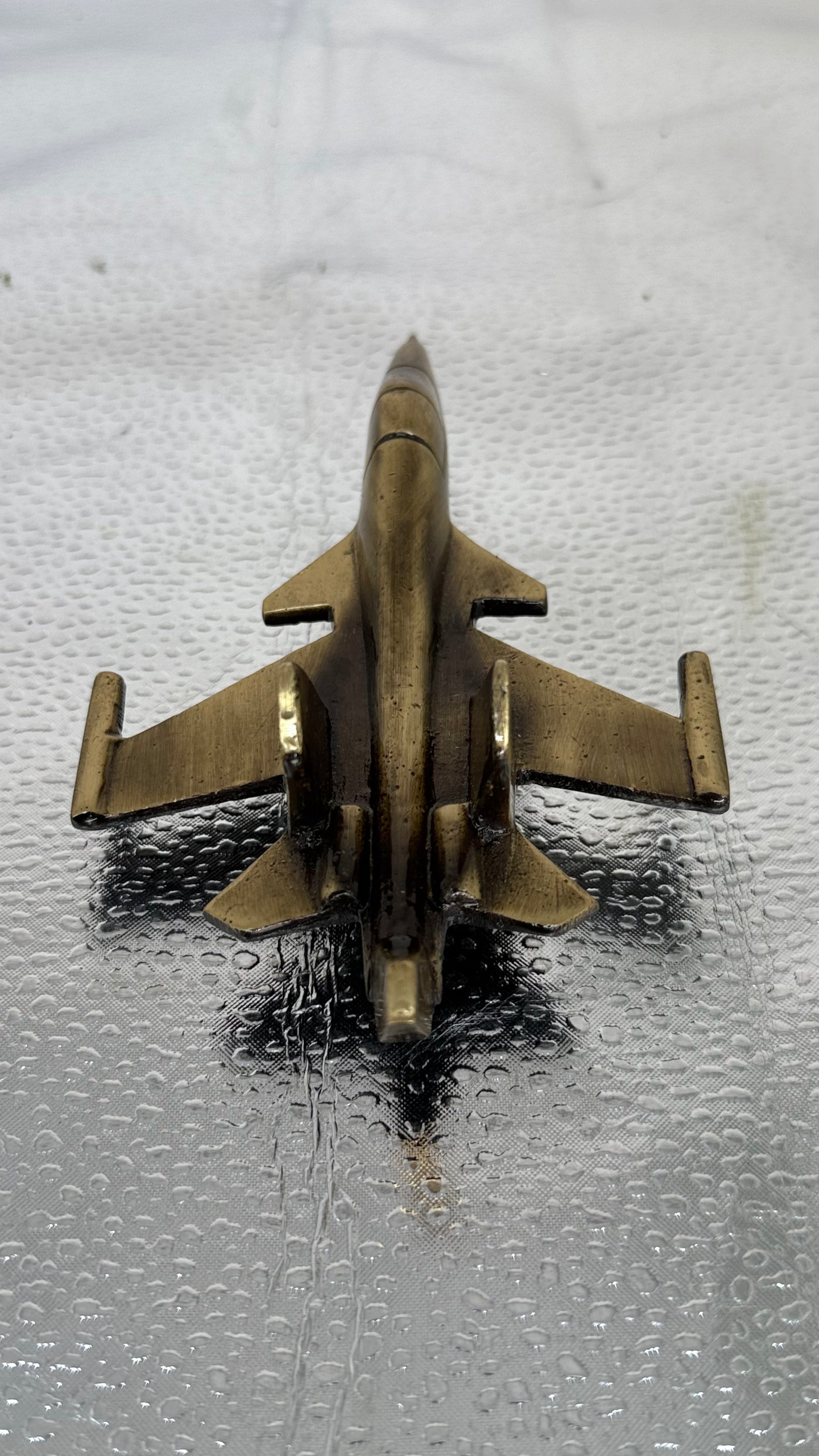 The jet’s twin-tail design, streamlined wings, and detailed craftsmanship make it an eye-catching addition to any desk, study, or display shelf. Whether you’re an aviation enthusiast, a pilot, or simply someone who appreciates industrial-inspired design, this handcrafted brass model is a timeless collectible that speaks of ambition and adventure.