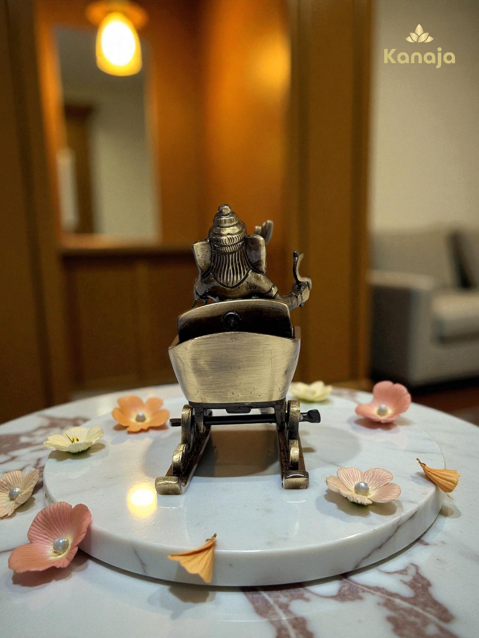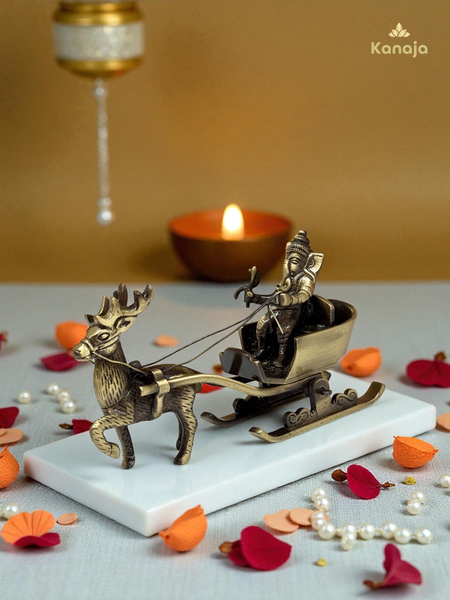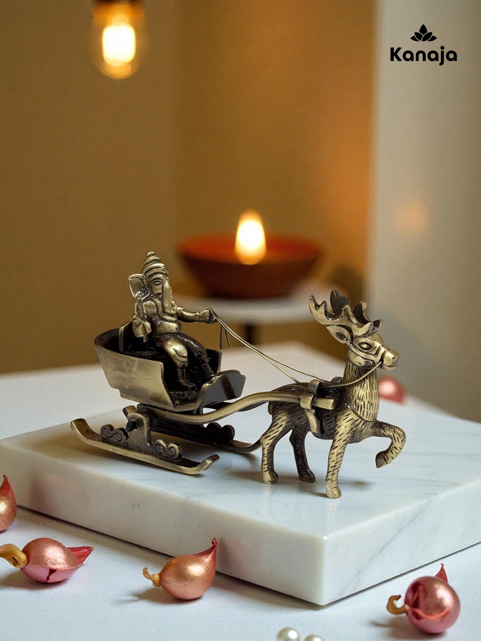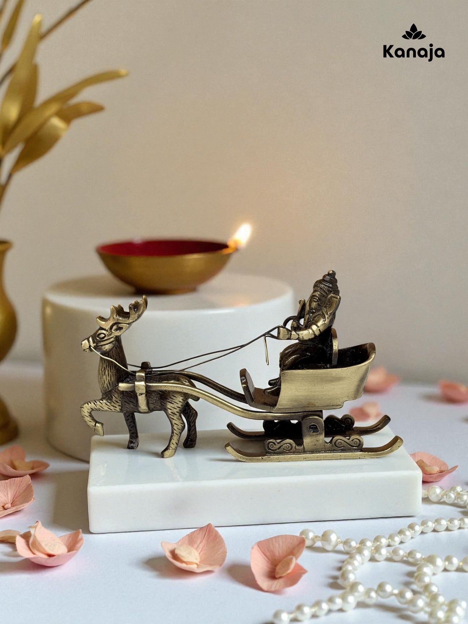 Vintage Brass Reindeer Sleigh with Deity Figurine - A Unique Blend of Festivity and Spirituality
